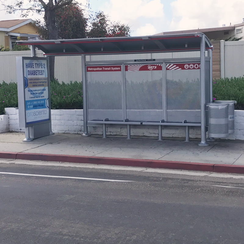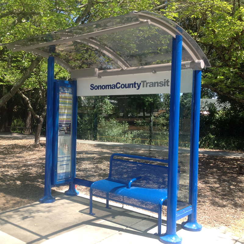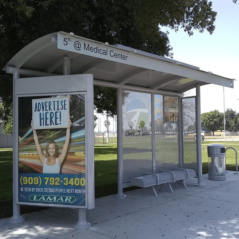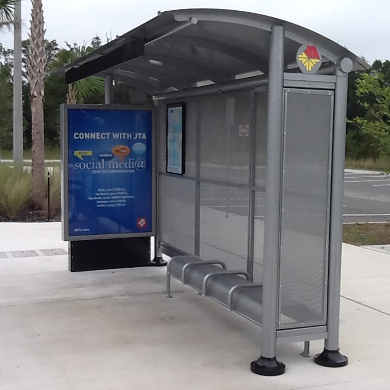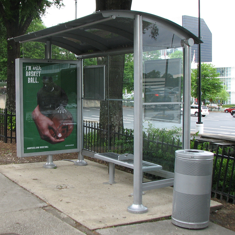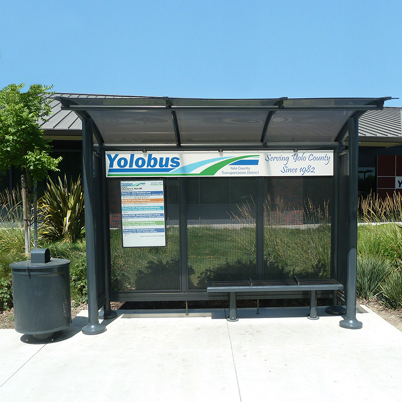 This 9-ft Signature Sunset bus shelter in Ft. Worth, Texas offers revenue-generating advertising on the end wall. t features a radius roof design with a nominal 9-ft by 5-ft roof dripline along a fully welded roof structure. 80W roof mounted solar panels with integrated battery storage, power the RMS80F Solar Lighting System which provides under roof security lighting with 5 day minimum autonomous operation through an 8W LED light fixture. A matching roof and footprint attachment are on both end walls for future ad kiosk retrofit. All parts are finished in super durable baked powder coat color as selected from TCI standard RAL color deck.