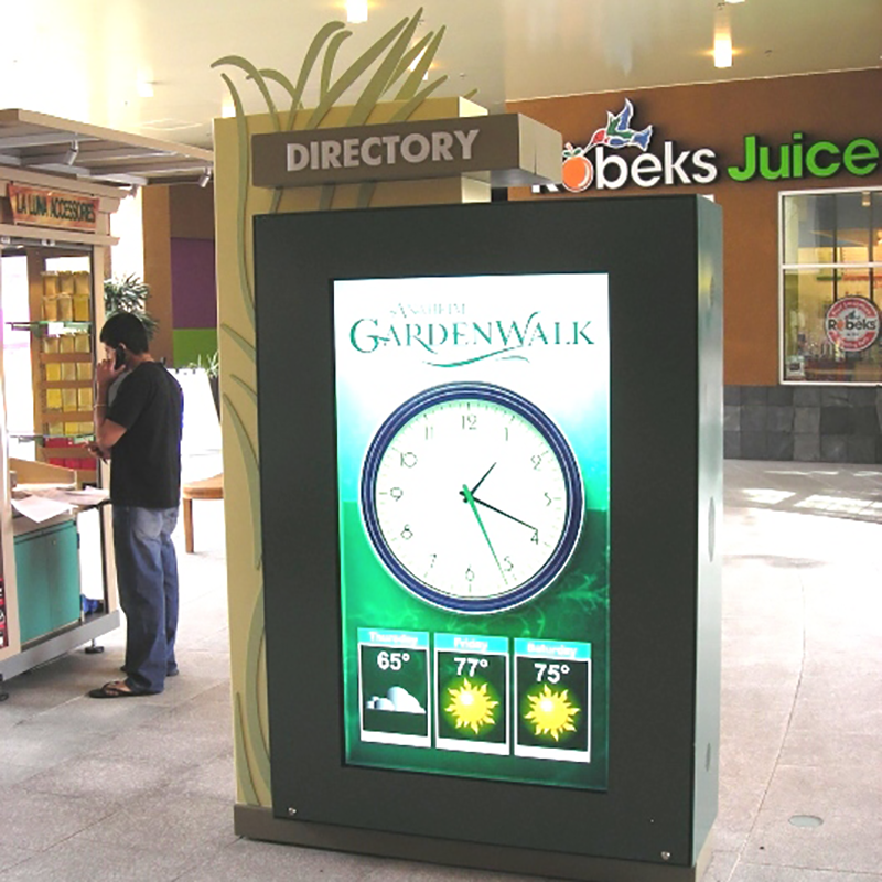 - Large format LED displays and free-standing kiosks in NAMA rated weather-resistant enclosures