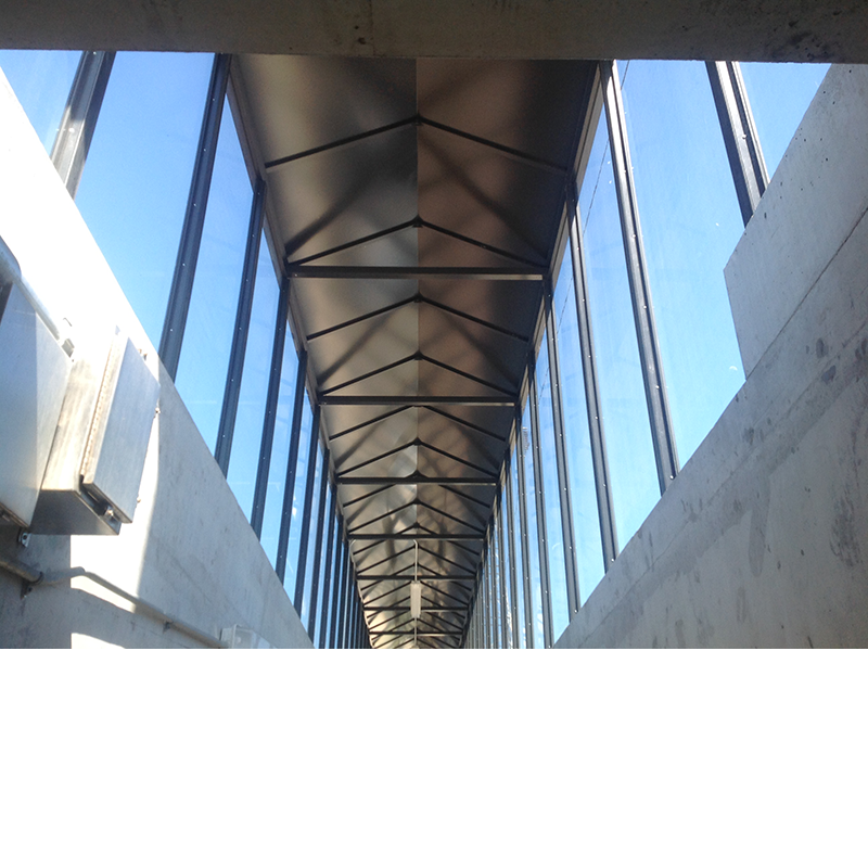 Modular Niagara High Peak Walkway with glass walls covering passenger staircase