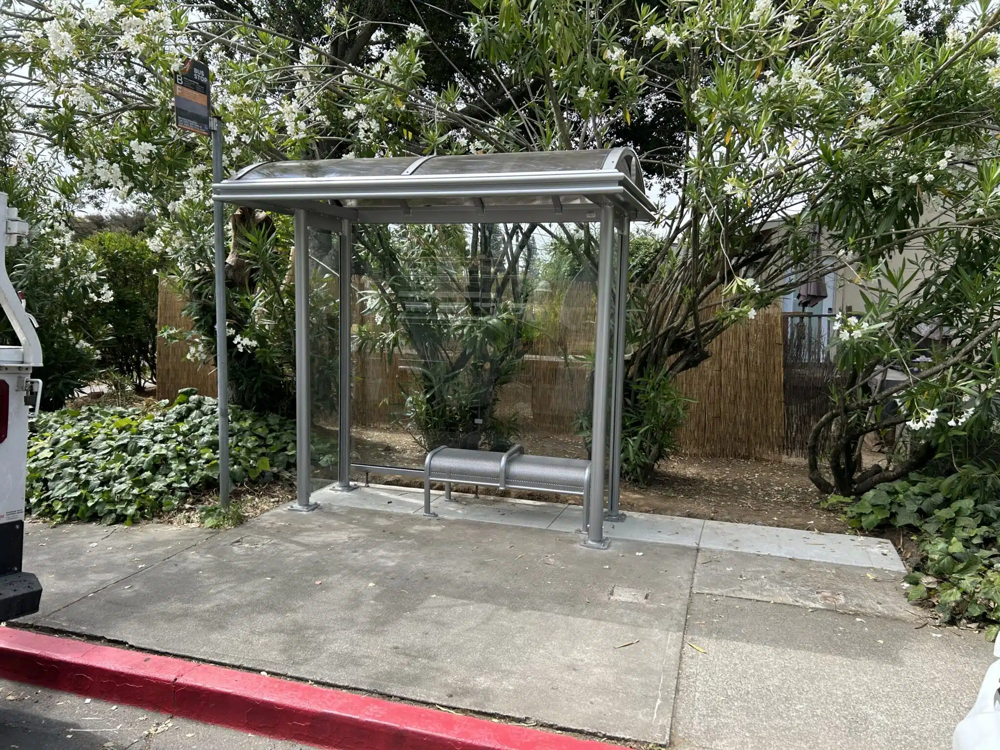 - Bus stop enclosures include tempered glass or tough, transparent Lexan