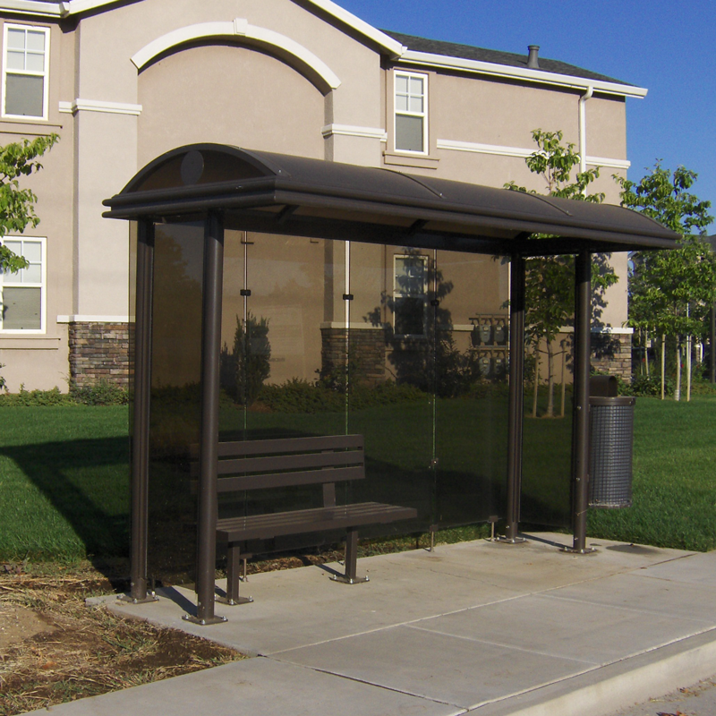 - Bus stop enclosures include tempered glass or tough, transparent Lexan