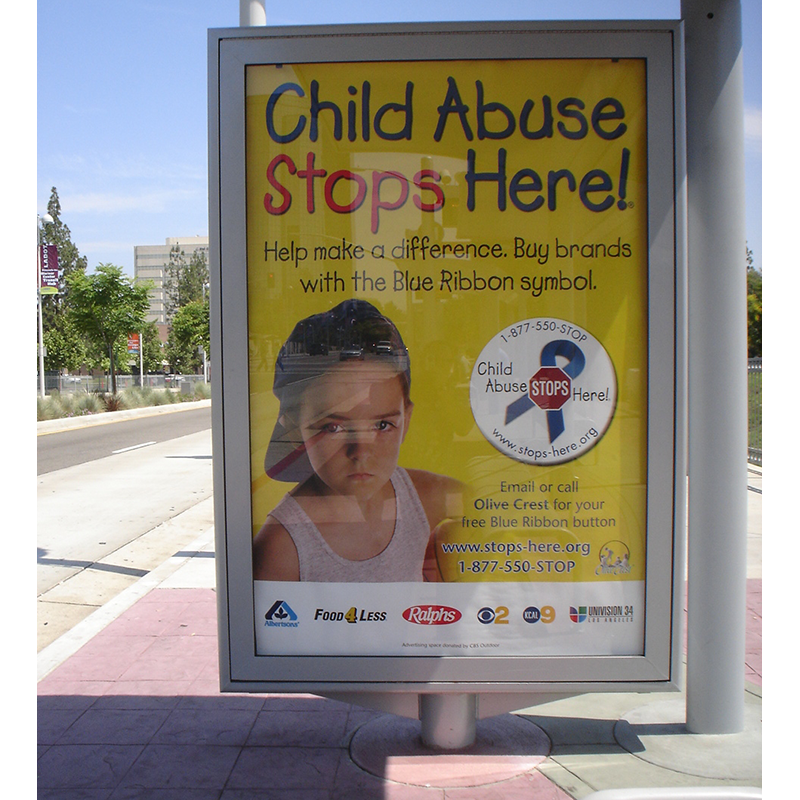 Two-sided advertising display kiosk with below grade mount for use with or without a transit shelter. Backlit illumination also available.